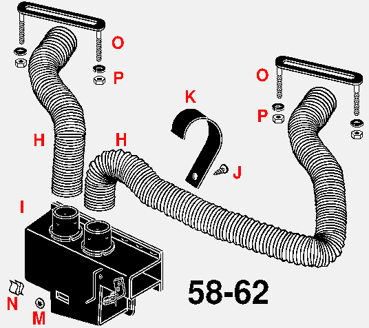 58-62 Defroster Box, Hose, Clamps, S-Clip, Push on Nuts, Dash Bezel
