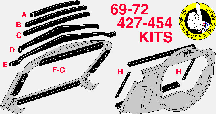 LATE 69 427-454 RADIATOR SUPPORT 4 PIECE SEAL SET with PSA |
