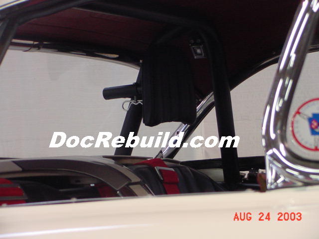This is typical of the racing mirrors of this 1950's era. Reflected in the chrome you can see me in the orange shorts taking the picture.