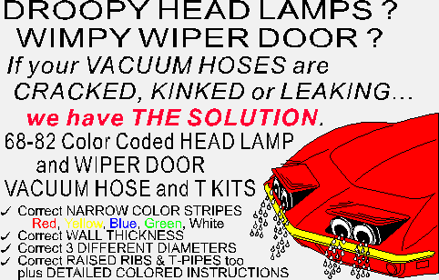 | FACTS: Dr. Rebuild created these vacuum hose illustrations, and he looked under the hood of many, many, many real Corvette's. In sworn testimony for a U.S. Federal Court deposition, Zip Corvettes "artist" swore that he created each of the vacuum hose drawings they had showing the routing and connections. Remarkably, he also swore that he had never looked under the hood of any Corvettes. Coincidentally if you hook up the hoses to that Zip Corvette illustration, neither the headlamps nor the wiper door will open. Who would have guessed that with all their efforts? Top notch research. | |
