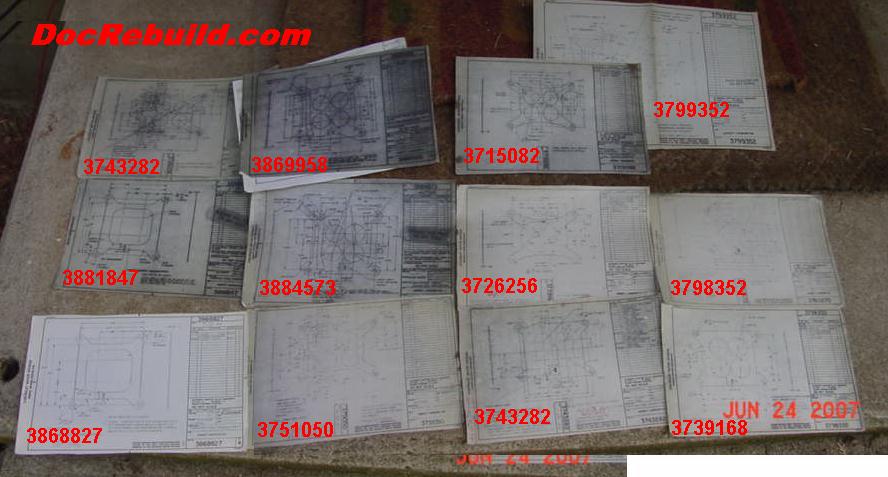 We have 9 different Holley patterns, Blem Products actually has "One Size that Fits All". Here is how one fellow was confused with the $4 bargain from Blem Products of Mechanicsville. Following are copies of GM blueprints for Corvette carb gaskets. If you want a close repro, you have come to the right place. If you want a generic replacement Auto Zone can fill your bill, without the zippy middleman. (The only way I could get them all was to splice 2 pics.)