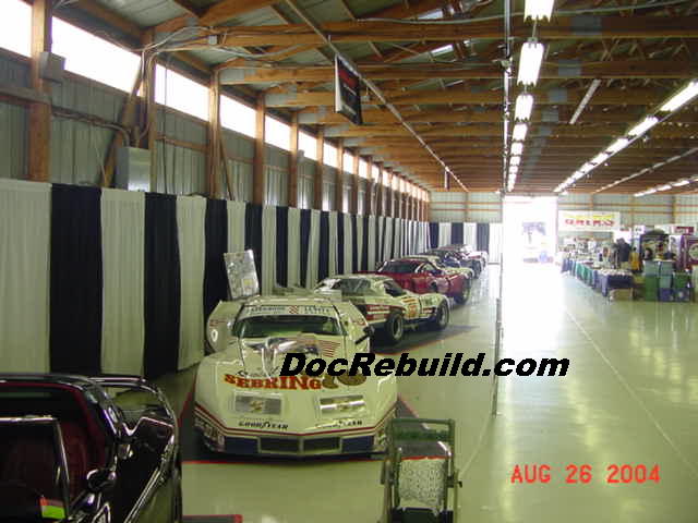| The collection of Corvettes at Carlisle 2004 included 15 or so of John Greenwood's WIDE BODY creations. My previous close hand experience with them was as close as the cover on Ludvigsen's book: "Corvette Americas Star-Spangled Sports Car". Who could forget that image of the Stars and Stripes on a full race Corvette? In person they are fabulous additions to the stable. | |||