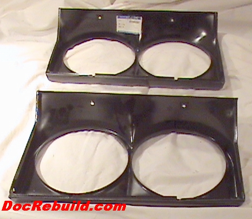 New genuine GM manufacture parts 3848501 and 3848502 with GM part tags intact. The right bezel has the GM part tag on the inner surface where it could be left for posterity. The left bezel has the part tabs on the exposed front lower surface where it would need to be removed. These will only 64-67 Corvettes with die cast Zinc headlamp housings and will not fit 63 Corvette with fiberglass headlamp housings although some ace mechanics can retrofit a skidsteer to a diesel C3. Condition: brand spankin new in Black GM applied paint. No dings, dents or other surface imperfections. Needs scuff, prime and paint for final use. | |||