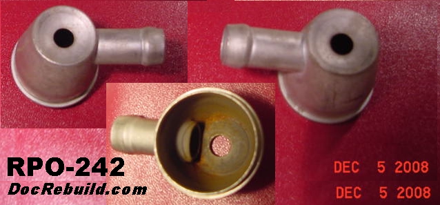 Excellent replated original. No scale, rust or dents. Replaces crankcase breather pipe that spews oil on bottom of chassis. Reroutes crankcase blow by to base of carb. Original on all Kalifornia delivered 61-62 Corvettes.